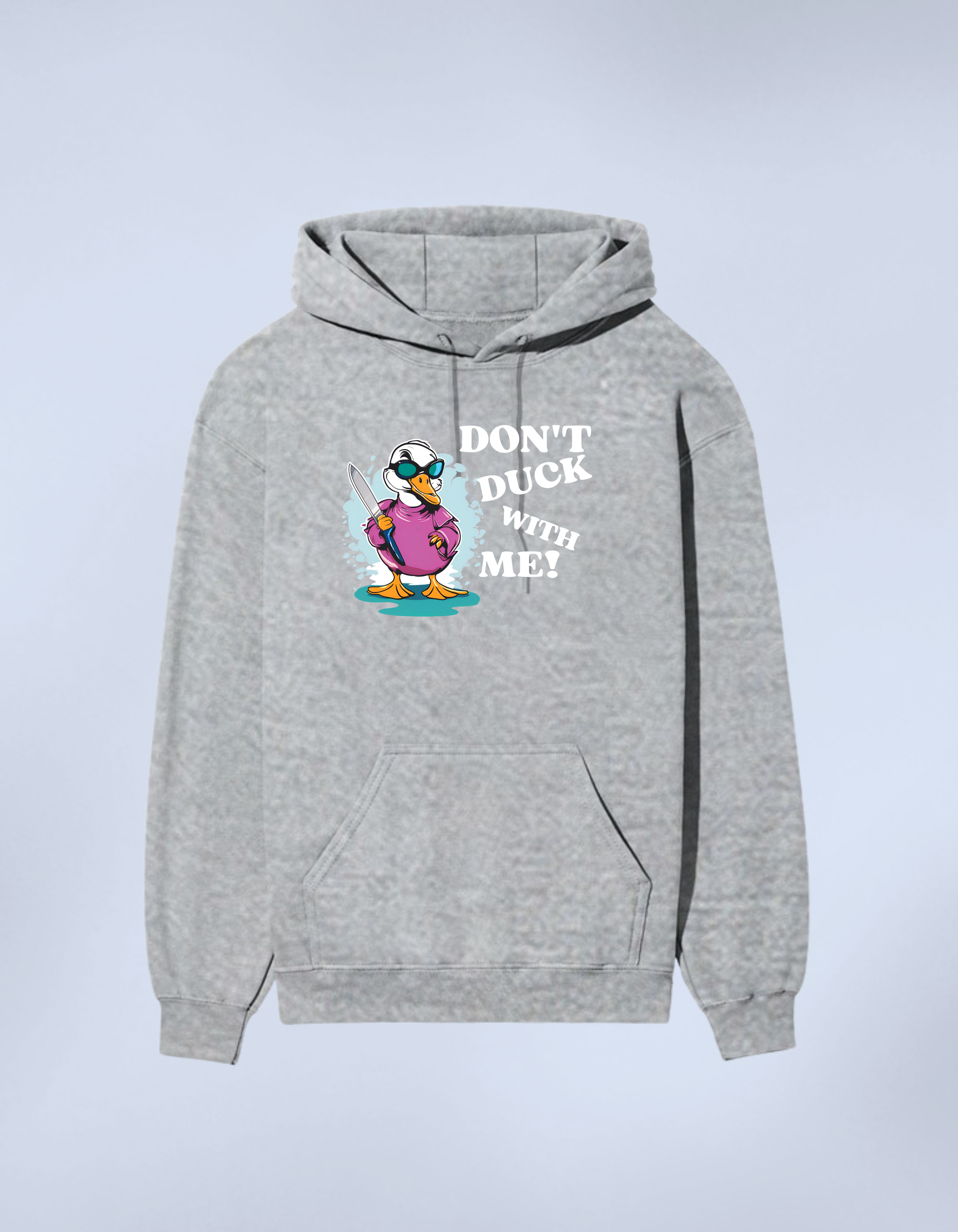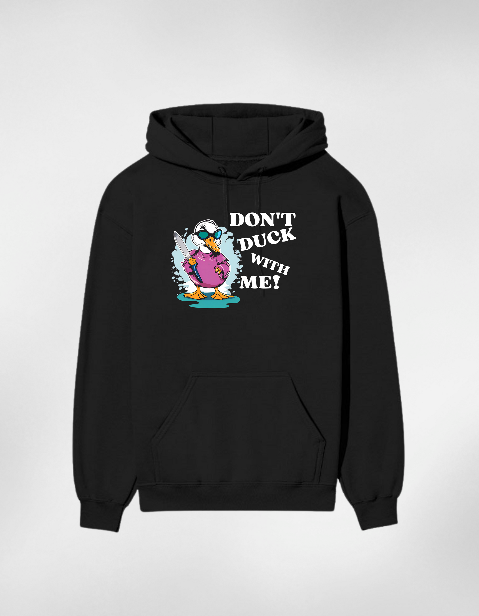 •Premium cotton hoodie with a quirky “Don’t Duck With Me” design.