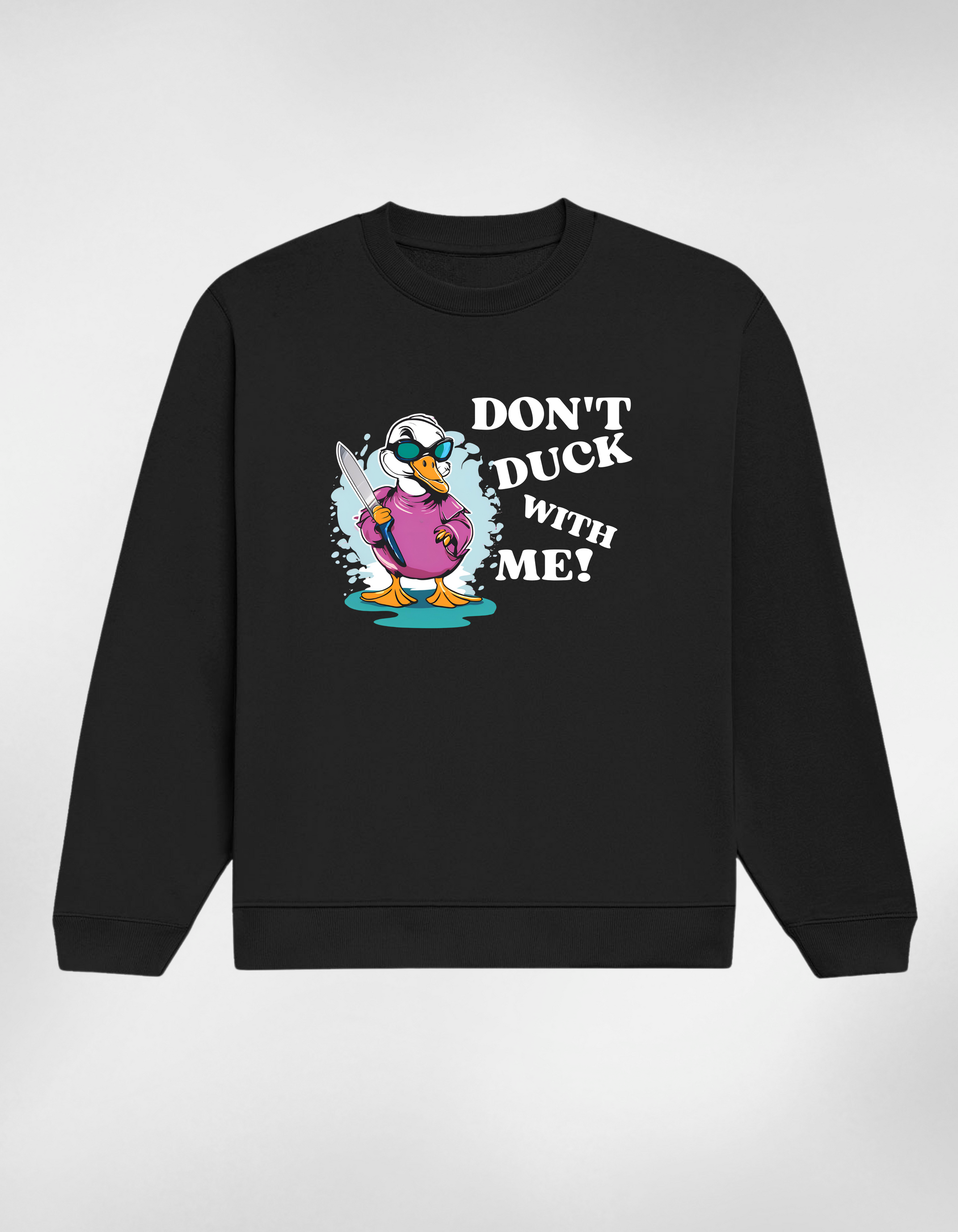 •Showcases the playful and edgy text “Don’t Duck With Me”.