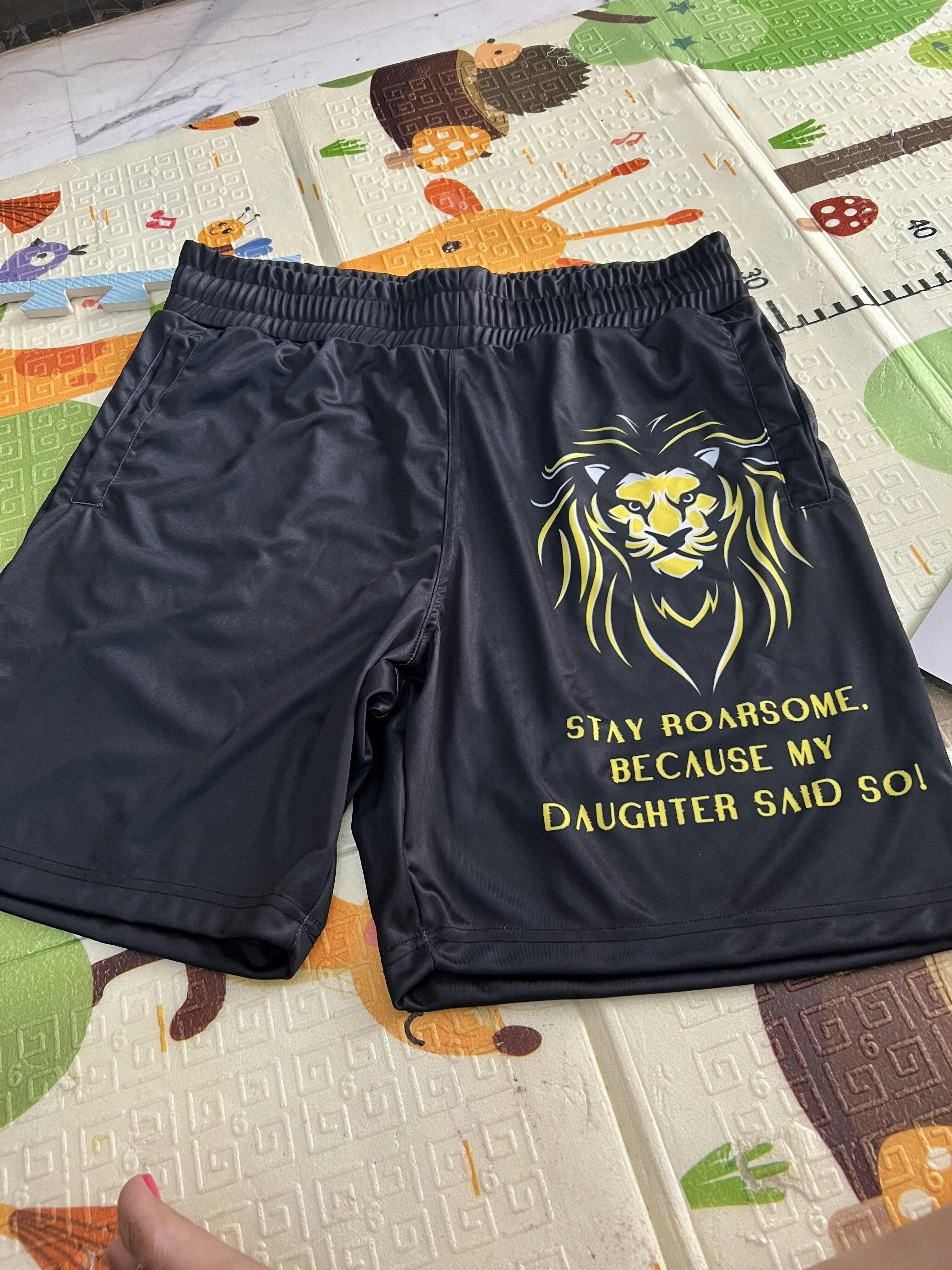 • Roarsome Dad Men’s Shorts: Fun and humorous design featuring a playful lion graphic